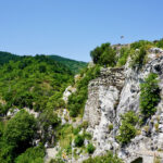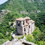 Nach nur ein paar Tagen “ Europa “ haben wir schon wieder genug vom Trubel. Wir entscheiden uns für einen Ausflug zur Asens Festung sowie zum Kloster von Bachkovo. Mit dem Bus geht es ganz einfach nach Bachkovo, aber Pustekuche denn die nächsten 2 Busse sind ausgebucht. Hä, was ist denn hier los….? Der nächste frei Bus erst um 12:40 Uhr, das ist uns zu spät. Wir nehmen den Bus nach Asenowgrad ( EUR 1,00 pro Ticket ). Übrigens, eine freundliche junge Damen aus Nordmazedonien half uns die richtige Verbindung zu finden ( Sie sprach uns auf Deutsch an ..). In den vielen Reisebüros bekamen wir nur spärliche Informationen oder die Damen und Herren waren mal wieder kacke drauf….. In Asenowgrad angekommen ging es zunächst zu Fuß weiter. Die letzten 2 Kilometer sind wir per Anhalter gefahren, ein freundliches Pärchen aus Belgien war so freundlich uns mitzunehmen. Wir sind sehr froh darüber, denn es ist mal wieder sehr sehr heiß. Ach ist das schön hier. Endlich mal wieder schön grün und Ruhe. Auf dem Weg zur Festung haben wir uns spontan dazu entschlossen das Land zu wieder zu verlassen ( Die junge Dame vom Busbahnhof war DAS Zeichen !! ). Unsere weiteren Ziele z.B. das tolle Rila Gebirge lassen wir ausfallen. Der Grund dafür ist, dass wir uns in Bulgarien nicht so richtig wohl fühlen. Die Menschen hier in Bulgarien machen noch immer einen sehr mürrischen Eindruck auf uns. Alles sehr emotionslos und muffelig. Das mag auch an uns liegen, denn wir sprechen noch kein einziges Wort Bulgarisch. Andererseits, hinter uns liegen nun 16 Monate Asien, da kann Europa – in puncto Herzlichkeit – ja nur verlieren….. Wir werden sehen und lassen uns überraschen. Zunächst einmal genießen wir die tolle Natur rund um die alte Festung – aus dem 13. Jahrhundert – von der nur noch die Kirche übrig ist. Gleich neben der Kirche zweigt ein kleiner Wanderweg nach Bachkovo ab. Wir beraten uns kurz und entschließen uns dann dazu die 9 Kilometer von der Festung zum Kloster zu Fuß zu gehen. Wir wollen mal wieder was für unsere Knochen tun. Es geht ordentlich bergauf und auch mal wieder bergab. Unterwegs herrscht gähnende Leere auf dem Wanderpfad. Kein Wunder, denn wer ist schon so blöd und wandert bei diesen Temperaturen. Stunden später uns sehr sehr durstig erreichen wir Bachkovo. Erstmal gibt es ein paar Durstlöscher bevor wir die letzten 1,5 Kilometer in Angriff nehmen. Das Kloster kündigt sich in Form von Restaurants sowie vielen Souvenirständen an. Das Kloster liegt sehr idyllisch im grünen und ist mega schön.