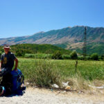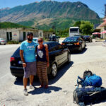 Ein letzter und leider vergeblicher Versuch noch ein paar Tage dranzuhängen in Berat…. Es folgte eine sehr herzliche Verabschiedung von Tomor. Mit dem Stadtbus geht es zunächst in Richtung Busterminal. Dort wollen wir uns den 08:00 Uhr Bus nach Gjirokaster abgreifen. Wir sind sehr rechtzeitig am Terminal aber vom Bus ist nichts zu sehen. Man teilt uns mit, dass der Bus bereits frühzeitig voll war und deshalb schon los ist. Man bietet uns den Bus nach Vlora an, wir müssten dann in Levan in den Bus kommend aus Tirana umsteigen. Wir machen es so, vorausgegangen war ein kurzes Telefonat mit einer Dame, die des englischen mächtig war, denn mit der Ticketdame nützten auch Hände und Füße nichts. Pünktlich um 08:30 Uhr ging es dann los und die Haltestelle an der Schnellstraße erreichten wir ca. 1,5 Stunden später. Die Dame gab uns noch einen letzten Tipp “ No Taxi, No Taxi !!! “ Ein Taxifahrer lauerte schon und bot seine Dienste an, wir lehnten dankbar ab ( EUR 50,00 für 100 Kilometerf ür deutsche Verhältnisse mehr als fair für uns aber zu teuer ). Von einem Bus weit uns bereits nicht zu sehen, angeblich sollten wir nur 5 Minuten warten. Der Taximensch nervte und nervte und das auch noch mehrsprachig ( alles auf netter Basis ! ). An der vermeintlichen Bushaltestelle oder dem Taxistand konnte man auch Melonen und weiteres Obst kaufen. Ein netter Kunde teilte uns mit, dass wir an der falschen Straße stehen und bot uns an uns ein kleines Stück mitzunehmen. Das Angebot haben wir gern angenommen und 10 Kilometer weiter stiegen wir an der korrekten Stelle aus ( Ein Albaner, der in Dublin arbeitet und auf Heimatbesuch ist. Mit dabei der Vaddi, wie immer alle sehr nett und hilfsbereit ). Nach ca. 15 Minuten Daumen raushalten hatten wir Erfolg. Ein netter Albaner, der in der Schweiz wohnt und zu seiner Familie nach Griechenland will hat uns bis kurz vor Gjirokaster mitgenommen. Die letzten 5 Kilometer waren dann nur noch Formsache, ein junger Mann – mit Kind auf dem Rücksitz – nahm uns mit ins Zentrum. Dort angekommen verlangte der Kollege tatsächlich von uns…..( Immerhin LEK 500,00 ). Wir lehnten dankbar ab, ein Mädel übersetzte uns, dass es hier durchaus üblich sei “ Taxigeld “ für Privatpersonen zu zahlen. Es riecht nach Abzug wir wollen aber keinen Ärger und geben LEK 300,00 und jetzt kommt der Hit. Der „Unternehmer“ gibt der jungen Dame davon LEK 100,00 ab und die verschwindet dann schnell mit dem einfach verdienten Geld ( Wir wundern uns und lachen uns schlapp ;-)) Sind wir doch noch in Asien ?????? 😉 😉 😉