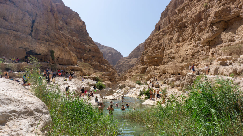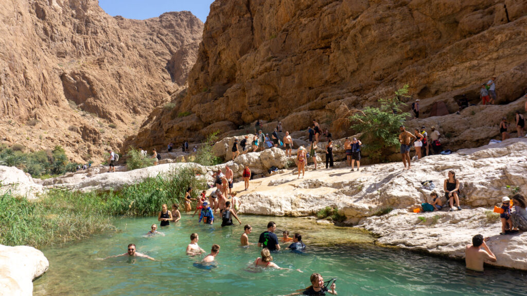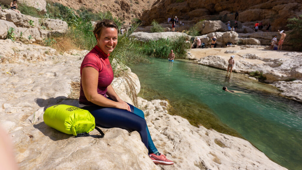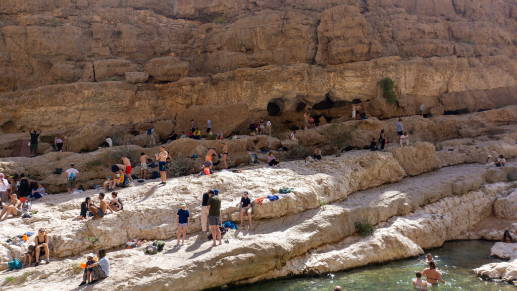 Wir packen unsere Sachen in unsere DryBags und machen uns auf zur Endstation Höhle. Ein toller Badeweg, der in einer kleinen Höhle endet. Tolles Wasser und mega Natur. Leider nur etwas zu voll und zu laut hier, aber das lässt sich an so einer Sehenswürdigkeit nicht vermeiden. Es geht wieder zurück zum Hauptpool zum entspannen und sonnenbaden. Das Wasser ist nun nicht mehr so schön und es wird immer voller / lauter. Wir machen uns auf den Rückweg und legen hier und da noch eine weitere Schwimmpause ein. Was für eine tolle Natur nur leider etwas zu voll, aber wir sind ja auch ein Teil davon. Am Abend geht es dann noch zum handy repair shop, da mein Telefon Wasser geschluckt hat. Amateurfehler, denn der DryBag war nicht korrekt verschlossen. Handy kaputt lautete die Diagnose. Der Kollege vom Handy Laden hat noch angeboten ins ca. 60 Kilometer entfernte SUR zu fahren ( um das Handy zu retten ). Das fanden wir dann doch ein wenig übertrieben. Zum Abendessen ging’s dann in ein einfaches Restaurant um die Ecke. Ein toller Tag geht mal wieder zu Ende.