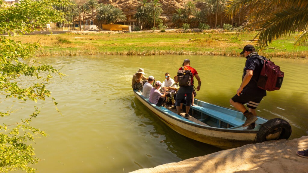 Danke KI / Das Wadi Shab ca. 1,5–2 Stunden von Maskat entfernt, ist eine spektakuläre Schlucht, die für ihre smaragdgrünen Pools, Wasserfälle und eine verborgene Höhle bekannt ist. Der Ausflug beinhaltet eine kurze Bootsfahrt, eine ca. 45-minütige Wanderung und Schwimmeinheiten. Es gilt als Top-Attraktion, besonders für Abenteurer.