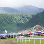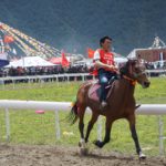 Kurz zur Geschichte. Bereits einige hundert Jahre bevor unserer Zeitrechnung trainierte die Kavallerie des Jiantang Stammes an jeden 5. Mai zu Pferde. Nachdem die Tibeter – ebenfalls lange unserer Zeitrechnung – das Territorium der Jiantang übernommen haben, hielt der damalige tibetische König eine “ Waffenparade “ ab bei der viele weitere ethnische Gruppen ebenfalls dabei waren. Während der Qing Dynastie ( 1644-1911 ) war eine kleine Gruppe Soldaten auf dem Grasland stationiert und führte die Tradition weiter.