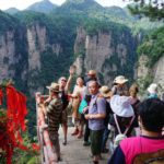 Wie sich später herausstellen sollte, haben wir heute zu lange geschlafen…… Um 10:00 Uhr haben wir uns auf dem Weg zu einer DER Attraktionen gemacht, den Tianmen Mountain. Mit dem Bus ging es zunächst von unserem Ort – Wulingyuan – zu dem 1 Stunde entfernten Zhangjiajie. Ziel war es zunächst einmal auf den Berg zu kommen. Warum also nicht die weltweit längste Seilbahn nutzen ? Einfach gesagt aber schwer getan, denn Juli und August ist Ferienzeit in China und wir haben Wochenende ….. ! HAAALLLOO MC FLY IST NOCH JEMAND ZU HAUSE ? Die Dame am Ticketoffice teile uns mit, dass wir uns um 13:30 Uhr für die Seilbahn anstellen können. Hmm und dann ? Das war uns zu schwammig. Um einen klaren Kopf zu bekommen musste erstmal ein verfrühtes Mittagessen her. Am Busbahnhof gab es dann ein Monster Portion super lecker Nudeln. Wir beschlossen dann in den Nationalpark zu gehen ( Der Park mit dem aus Funk und Fernsehen bekannten „ Avatar „ Felsen ). Da dieser Park ebenfalls auf unserer Liste stand, haben wir nur ein wenig umdisponiert. Der Tianmen Mountain muss also noch ein wenig warten. Kurz zu dem Park. Das Teil ist Mega-Monster-Gozilla mäßig geil. Uns fehlen die Wort. Ein Mix aus Karstgebirge, Stone Forrest Park, Wald und Schluchten. So eine tolle Landschaft haben wir noch nie gesehen. Allein bei den Gedanken an diesen Ausflug bekommen wir heute noch „ Haut von Gans „ Den Nationalpark haben wir zu Fuss, per Seilbahn, per Bus und per Fahrstuhl erkundet. Wir waren etwas knapp in der Zeit und somit konnten wir leider nicht so viel individuell auf die Beine stellen. Individualisten scheinen hier nicht auf ihre Kosten zu kommen, denn die Wege lassen keinen „ Ausbruch „ zu. Die Staatsmacht versucht hier wohl die wuseligen Einwohner auf Linie zu halten und natürlich sollen auch die kostenpflichtigen Transportwege ( Seilbahn, Fahrstühle etc…) genutzt werden. Vielleicht waren wir auch zu doof, sind doch auf unseren Karten „ Wanderwege „ eingezeichnet. Gefunden haben wir heute keinen ( zwei Versuche ).