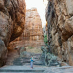 Wissenswertes aus Wikipedia zu den Höhlentempel in Badami –> Ein Höhlenkomplex mit drei hinduistischen Höhlen und einem Jain-Heiligtum befindet sich am Nordrand des südlichen Berges; die Höhlentempel wurden in mühevoller Arbeit aus dem harten rötlichen Sandstein gehauen. Die niedrigste und dem Ort am nächsten gelegene Höhle ist Höhle I, die höchstgelegene ist Höhle IV. Zwischen der zweiten und dritten Höhle befindet sich zudem noch eine kleinere, unvollendete Höhle bzw. Grotte. Die Höhle I ist Shiva gewidmet, die Höhlen II und III Vishnu, die Höhle IV ist eine Jaina-Höhle. Die Höhlen werden der frühen westlichen Chalukya-Kunst zugerechnet, stammen aber aus unterschiedlichen Jahrhunderten ( z.B. Höhle 1 aus dem 6/7 Jahrhundert ).
