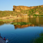 Das Ziel für den nächsten Tag. Die Höhlentempel von Badami