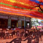 Buddhistischer Tempel ( Jogyesa ) in Seoul. Man sitzt hier auch gern und ruht sich aus.
