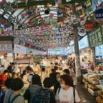 Flächenmäßig ist Seoul etwas kleiner als Hamburg, dafür schiessen die Hochhäuser wie Pilzarmeen aus dem Boden. Nicht schön anzusehen, dennoch fühlen wir uns hier super wohl. Alles sehr sehr sauber und gut organisiert. Das viele Grün in der Stadt bietet dann auch die notwendigen Ruheoasen. Die Stadt wurde 1394 nach den Regeln des Fengshuis erbaut. Die Lage tut noch ihr übriges dazu: Die schroffen Gipfel des Bukhansan im Norden bildeten einen Schutzwall gegen Dämonen, im Süden schuf der Bogen des Han-Flusses eine Glück bringende Barriere. Das gute Fengshui bescherte der Stadt von nun an eine stete Entwicklung. Ob man sich deswegen so wohl hier fühlt….?? Wer weiß… Mit den Öffis – das U/S-Bahnnetz ist ca. 18.000 Mal größer als in HH ( hier leben ja auch ein paar Millionen mehr ) kann man fast problemlos alle Punkte der Stadt erreichen. Man muss eben nur wissen welche Bahn in welche Richtung fährt. Alles was so geht in den paar Tagen haben wir abgegrast. So eine Großstadt macht schon echt müde, denn zu Fuß lässt sich das eine oder andere Schmuckstück ebenfalls erobern. Perfekte Wege für Fussgänger und Fahrradfahrer machen einen Besuch sehr angenehm. Wie immer stürzten wir uns natürlich auch in das Gewusel auf verschiedenen Märkte. Und davon gibt es hier reichlich. Es gibt ALLES was man sich vorstellen. Hier haben wir auch die ersten koreanischen Köstlichkeiten probiert. Wir sind total begeistert vom Essen, zu jeder Mahlzeit wird Kimchi und weitere fermentierte Leckereien, sowie Algen in unterschiedlichen Formen gereicht. Super lecker und auch noch gesund. In die Tradition des koreanischen BBQ’s wurden wir von Daniel und seiner Frau Christin (die Besitzer unseres Gesthouses) eingewiesen. Natürlich mit dem dazugehörigen National-Getränk Soju in reiner Form, sowie mit Bier gemixt als Somac. Ein weiteres typisches Getränk, Makgeolli, gab es auch noch. Wir hatten super viel Spaß mit den beiden und es war alles total lecker. Kulinarisch sind wir also bereits komplett eingetaucht.