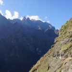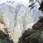 Es war Zeit sich neuen Abenteuern zu widmen und so zogen wir weiter nach Qiaotou ( ca. 2800 Meter hoch gelegen an der Tiger Sprung Schlucht ). Die Strecke von Shaxi nach Qiaotou haben wir per Minibus sowie per Anhalter zurück gelegt. Per Anhalter hat mal wieder super funktioniert. Unterhalten wird sich während der Fahrt entweder fast überhaupt nicht oder per Übersetzungsprogramm. Nach der Ankunft in Qiaotou haben wir uns in Jane’s Guesthouse einquartiert und uns am gleichen Abend noch mit Wander Proviant eingedeckt. Am nächsten Tag sollte dann unsere 2 Tage Bergwanderung losgehen, Wir waren schon mächtig aufgeregt, denn die Wanderung an der Tiger Sprung Schlucht sollte ein echtes Highlight werden. Also am folgenden Tag relativ früh hoch und erstmal ein Monster Frühstück zu uns genommen. Die beiden großen Rucksäcke haben wir im Guesthouse gelassen. Alles notwendige hat in unsere kleinen Rucksäcke gepasst. Bevor wir weiter erzählen noch kurz ein paar Fakten und Geschichten zur Tiger-Sprung-Schlucht. Der Legende nach hat ein Tiger die Schlucht an der engsten Stelle über einen Mega Stein übersprungen. Eine weitere Superlative; es handelt sich hier um die tiefste Schlucht der Welt ( 3900 Meter vom tiefsten bis zum höchsten Punkt ). Die Schlucht selbst ist ca. 15Km lang. Im Tal fliest der Jangstekiang auf einer Höhe von 1600 bis 1800 Metern ). Eine herrliche Kulisse bilden die beiden mächtigen Berge; Haba Shan ( höchster Punkt 5396 Meter ) auf der Westseite sowie der Jadedrachen Schneeberg ( chin. Yulong Xueshan – höchster Punkt 5596 Meter ) auf der Ostseite. An der Höhenluft konnten wir uns die vergangenen Tage bereits gewöhnen, trotzdem waren wir nach 9 Stunden Wanderung doch ziemlich kaputt. Übernachtet haben wir vor dem mächtigen Yulong Xueshan im “ Local Point Family Guesthouse “ Ziemlich wenig los dort und mit einer Mega-Monster Dachterrasse. Am nächsten Tag ging es dann weiter bis zum Ende der Bergwanderung ( Walnut Garden Guesthouse ). Dort haben wir bei bestem Wetter super zu Mittag gegessen. Dann sind wir runter zur Hauptstrasse um über diese – per Anhalter – wieder zurück zu unserem Guesthouse zu gelangen. Auf dem Weg dorthin haben wir die Fährte des Tigers aufgenommen und uns die engste Stelle inkl. besagtem Stein angeschaut. In den Bergen konnten wir vor dem Tourt Rummel fliehen, doch am Stein haben uns die Massen wieder eingeholt. Wir lassen mal wieder die Bilder sprechen.