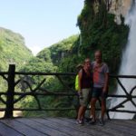In Wanfenglin angekommen sicherten wir uns zuerst einen schönen Schlafplatz. Am nächsten Tag – Vormittag – ging es dann auf Fahrrad Erkundungstour durch die Karstberge. Die wunderschön angelegten Wege und Strassen führten super toll durch die einmalige Landschaft. An alle Vietnam Reisenden…. Ninh Binh könnt Ihr gegen Wanfenglin vergessen… ;-). Durch vielen kleinen Orte laden zum gemütlichen Plausch mit den Einheimischen sowie tollem Essen ein. Gegen Mittag haben wir dann die Fahrräder zurückgegeben und uns auf zur Malin Schlucht gemacht. Einen ersten tollen Eindruck der mächtigen Schlucht inkl. derer Wasserfälle konnten wir uns bereits bei der Anfahrt nach Wanfenglin machen. Unser “ Fahrer “ legte einen kurzen Stop auf der Brücke ein, die über die Schlucht führt. Da stockte uns bereits der Atem. Die Maling Schlucht liegt Nahe der Stadt Xingyi und war super einfach mit dem Stadtbus zu erreichen. Angekommen an der Schlucht hatten wir die Wahl per Fahrstuhl oder zu Fuss zum Flussbett zu gelangen. Durchtrainiert wie wir waren haben wir den Fussweg eingeschlagen. Der Schlucht – Wasserfall Rundweg wurde in den Berg eingemeißelt. So konnten wir die vielen Wasserfälle hautnah geniessen.