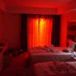 Unser Zimmer mit Neon Porno Beleuchtung von Aussen