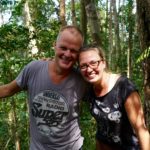 Nach einem entspannten Frühstück ( es gab Banana-Chocolate Pancake ) ging es auf zur 2 Tagestour – inkl. 1 x Übernachtung im Dschungelcamp – durch den Leuser Nationalpark. Nach einer kurzen Besprechung ging es auf zur Wanderung. Wie sich herausstellte hatten wir mal wieder so richtig Glück mit der Truppe… Colin ( Australien ) Ash ( Canada ) sowie Lisa und Phillip aus Deutschland und 2 Guides waren mit von der Partie. Als heutiges Tagesziel wurde das Übernachtungscamp am Leuser River ausgegeben. Je nach Wetterlage wird am Camp oder zu einem früheren Zeitpunkt übernachtet ( Die Regenfälle hier sind Gorilla – Monster – mäßig ). Der Weg zum Eingang war bereits mit tollen Pflanzen sowie zahlreichen Affen ( Longtail Makaken + Thomas Leaf Affen ) “ gepflastert. Nachdem wir ein paar Stunden gewandert sind, besuchten uns die ersten Orang Utans. Das war ein wirklich bewegender Moment. Auch wenn es sich dabei “ nur “ um die aus dem Rehabilitationscenter ausgewilderten handelte ( Semi-Wild ). Weiter ging es über Wurzel und Schlingpflanzen durch den Dschungel. Dabei trafen wir immer wieder auf weitere Semi-Wild Orang Utans, Das war immer wieder ein toller Moment. Nach der Hälfte der Tour ging ein großes Raunen durch die Truppe, denn in kurzer Entfernung kam ein Monster Männchen von Orang Utan aus dem Wald. Diesmal handelte es sich – angeblich – um ein wildes Tier. Was für ein Koloss. Die Begeisterung kannte keine Grenzen. Auf der Wanderung bekamen wir immer wieder Snacks und tolles Essen. Am späten Nachmittag im Camp angekommen, stürzten wir uns erstmal in den Fluss. Was für eine tolle Erfrischung und das Gefühl im Dschungel zu baden ist unbeschreiblich und in Worte nicht zu fassen. Das muss man einfach erlebt haben. Am Abend fing es dann – wie immer – an heftig zu regnen. Wir nahmen also lieber das gemeinsame Abendessen zusammen im Zelt zu uns. Ein toller gemeinsamer Abend an dem viel gespielt, geschnackt und gelacht wurde. Ein großes Lob an Ollo und Tham. Das sind wirklich zwei super Entertainer. Gegen Mitternacht ging es dann ins Bett und wir verbrachten eine etwas unruhige Nacht. Die Geräusche waren dann wohl doch etwas zu fremd. Geweckt wurden wir von dem getrampel der Affen auf dem Dach der Unterkunft. Ein herrlich sonniger Tag gegrüßte uns im Dschungel. Später kam dann noch eine Orang Utan Dame nebst Kind zu Besuch ins Camp. Was für eine Begrüßung am Morgen. Nach einem ausgiebigem Frühstück ging es dann zum Wasserfall. Dort erfrischten wir uns einwenig bevor wir dann den Dschungel Aufenthalt mit einem Mittagessen beendeten. Zurück zum Guesthouse ging es dann per Michelin Reifen Reisen. Hans Rosenthal ( RIP ) hätte jetzt gesagt. DAS WAR SPITZE. Wir geben 100 Punkte für diesen Trip.