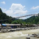 Die Mega Hängebrücke über den Fluss