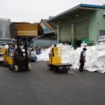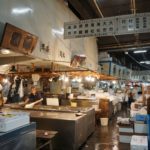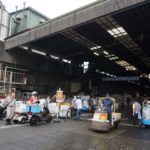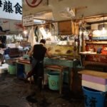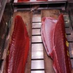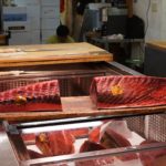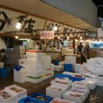 Zum Glück keine Verlängerung…….. denn wir wollten auf den berühmten „Tokyo Fishmarket“ Dahin ging es dann auch sofort nach Abpfiff. Die Thunfisch Auktion haben wir nicht mitgenommen, denn lediglich 120 Personen ist es vergönnt live dabei sein zu können. Start der ersten Auktion 05:15 Uhr, wer dabei sein will sollte am besten 2-3 Stunden vor der Auktion Vorort sein um sich in einer Teilnehmerliste eintragen zu lassen ( jeder Auserwählte bekommt dann eine Warnweste zugeteilt ). Leider verkehren zwischen 24:00 und 05:00 Uhr keine Züge, sodass man sich in den Warteraum die Zeit vertreiben muss. Dazu hatten wir keine Lust also mal wieder die entspannte Tour. Um 07:15 Uhr am Fischmarkt eingetroffen gab es erstmal ein vernünftiges Frühstück ( verschiedene Kleinigkeiten aus den vielen kleinen Restaurants, natürlich durfte eine frische Thunfisch – Sashimi Platte nicht fehlen – Super super frisch und lecker ). Einlass zu dem Großmarkt für Besucher ab 10:00 Uhr. Zur Überbrückung der Zeit sind wir zu dem angrenzenden „ Hama-Rikyu Garten gegangen. Der aus der Edo-Zeit stammende Garten gehörte der Shogun Familie Tokugawa. Der Garten ist berühmt für die tollen Teichanlagen sowie die Entenjagdreviere. Damals angelegt zum Zeitvertreib der Damen und Herren. Weiterhin interessant ist, dass die Teichanlagen durch Meerwasser gespeist werden und sich durch die Gezeiten verändert. Der letzte Verbliebende seiner Art in Tokyo. Rechtzeitig sind wir wieder am Großmarkt eingetroffen. Obwohl die früh morgendliche Hektik bereits dem Feierabend wich ( kein Tourist würde in dem Gewusel von Fahrzeugen und schwingenden Messern überleben ) war der Besuch ein tolles Erlebnis. Ach ja, Ende des Jahres zieht der traditionelle Markt von seinem jetzigen Standort – dieser besteht seit 80 Jahren – in neue Räumlichkeiten. Wir haben die neuen Gebäude von aussen gesehen und sind froh darüber den Tokyo Market in diesen alten Gemäuern erlebt zu haben.