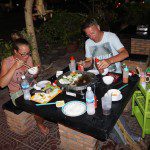 Kampot hat so einiges zu bieten…. Aber erstmal ein schickes Frühstück mit einem richtigen Baguette. Ein Wahnsinn, aber auch ein bisschen teurer. Egal, wir haben es uns so richtig schmecken lassen. Danach auf zum Moped Verleih. Die Teile haben wir dann gleich für 2 Tage gemietet. Kampot ist z.B. bekannt für Pfeffer, also auf zur Pfefferplantage. Kann man sich gern mal anschauen so’n Teil. Über den Highway und Sandwegen haben wir dann unser erstes Ziel erreicht. Die Plantage ist super angelegt. Bevor wir mit der Führung loslegten, gab es erstmal einen Shake. Danach kam die kurz und schmerzlose – aber interessante – Führung ( Organischer Anbau, alles mega Bio ). Noch kurz ein wenig eingekauft und weiter ging es zum Krebsmarkt nach Kep ( eine kleinere Ausgabe von Kampott ). War auch ganz nett hier, aber es war schon wieder zu heiss ( zu meckern gibt es ja immer etwas …). Da haben wir uns erstmal ne Pause am Strand gegönnt. Eigentlich wollten wir so richtig im Liegestuhl entspannen, wurde aber nichts draus, da die junge Dame stolze USD 4,00 pro Liegestuhl haben wollte. Da war uns dann doch zu teuer ( Anmerkung. Die Übernachtung kostet uns USD 8,00… ). Naja dann also ab nach hause zum entspannen. Kurze Dusche und hin zur “ happy hour “ Da haben wir uns dann ein paar Bierchen gegönnt. Später zum Abendessen dann zum “ Korean BBQ “ Auch auf die Gefahr hin, dass wir uns wiederholen….. Mal wieder ein geiler Tag.