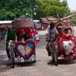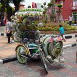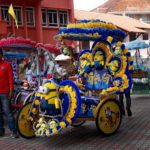 Die bunten, tollen, kitschigen Melaka Rikschas. Klasse finden wir.