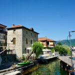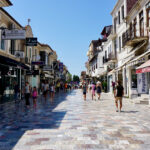 Nach der kleinen Kloster Besichtigungstour geht es Fuß zur ca. 1 Kilometer entfernten Grenze Nordmazedonien / Albanien. Nix los hier, die Aus und Einreise passiert ohne weitere Vorkommnisse. Wir lassen die Taxisfahrer links liegen, da wir die letzten 2 Kilometer zu Fuß bewältigen wollen. An der Straße – noch Schotterpiste – wird kräftig gewerkelt. Die Bauarbeiter verbringen ihre Mittagspause bei einer Schwimmerei uns bietet sich ein toller Blick über den Ohridsee sowie die umliegenden Berge. Über die Schotterpiste erreichen wir dann endlich Tushemisht, es ist mal wieder wahnsinnig warm und eigentlich zu heiß um hier durch die Gegend zu laufen. Viele große Hotelkomplexe haben sich hier breitgemacht. An einem nicht so großem Bunker versuchen wir unser Glück. Ein ältere Herr winkt uns von seiner Terrasse zu, ein Versuch ist es wert. Im Büro des “ Managers “ 😉 werden wir mit Küsschen auf die Wange für mich und einem Handkuss für Christina begrüßt. Ein toller Start in unser neues Abenteuer Albanien. Wir lassen uns zwei Zimmer zeigen und nach einigem Hin und Her – inklusive Übersetzungshilfe in dem benachbarten Restaurant – entscheiden wir uns 3 Nächte in dem Ort zu Verweilen. Nach einer kurzen Wartezeit von 45 Minuten – wir halten derweil die Stellung im Büro – können wir unser Zimmer beziehen. Zwei riesige Räume und zwei Balkone was will man mehr. Der nette Herr zeigt uns wo wir schlafen dürfen ( in einem sehr großen Doppelbett ), denn das andere Zimmer mit drei Betten ist nicht gereinigt. In dem teilgereinigten Bereich richten wir uns ein, im Badezimmer legen wir selbst nochmal Hand an ;-). Wir haben fertig und erkunden den Ort bzw. wollen mal das Wasser hier antesten. Wir schlendern entlang der Schotterkiste zum Strand und sind schockiert, denn hier ist Baustelle. Das Wasser ist trüb, hier wollen wir nicht baden ( wir wollen wieder nach Ohrid….. ;-)). Auf einem Schild erkennen wir, dass hier seit 2022 gebaut wird uns es sich anscheinend um ein größeres Projekt handelt. Die alten Bilder vom Strand zeigen viel grün und einen schönen Strand. Leider alles platt gemacht. Wir hätten viel früher oder viel später hierher kommen sollen ( am liebsten früher ), und wir entscheiden uns auf eine Nacht zu verkürzen. Absolut erwähnenswert ist der kompakte alte Stadtkern in dem wir uns sehr wohl gefühlt haben. Tolle Häuschen mit vielen schönen Restaurants, die von kleinen Bächen durchzogen sind ( sozusagen ein Mini Venedig ). Hier verbringen wir den Nachmittag und auch zum Abendessen kommen wir gern zurück. Der alte Dorfkern steht im krassen Gegensatz zu der großen Baustelle am Strand. Trotzdem werden wir den Ort am nächsten Tag wieder verlassen.