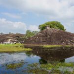 Kurz zum Kloster von Hatthikuchchi aus dem Weltnetz. Zitat “ Das steinerne Pagodennetzwerk wurde während König Devanam Piyatissa gebaut und kann inmitten wunderschöner Teiche und Flora sowie üppigem Grün und natürlichen Felsen beobachtet werden. Es gibt viele entsprechende Faktoren und Zeichen auf dieser Site, die es aus dem dritten Jahrhundert v. Chr. belegen. Archäologische Beweise deuten darauf hin, dass die Stätte bis zum 10. Jahrhundert eine erfolgreiche buddhistische Stätte war. Der Teich auf einem Felsen, der nie mehr von Sonne oder Mond beeinflusst wird, die zurückhaltende Pavva wie eine Steinfalle, der Tempel, das Bodhi Ghara sind die offensichtlichsten archäologischen Wunder an diesem Ort “ Zitat Ende “