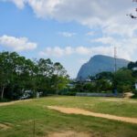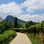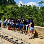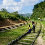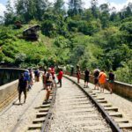 Die Temperaturen sind hier schon viel angenehmer. Wir haben ein schönes Zimmer inkl Balkon mit Ausblick auf Ella und Umgebung und nicht zu vergessen den Baustoffhof 😉 Im Hotel ist mal wieder nix los. Auch schön, dass wir die Küche nutzen können. Am nächsten Tag – es muss jetzt flott gehen, da das Wetter schlechter werden soll – ging es zunächst zum “ Little Adams peak “ Der ist wirklich Mini und war schnell bezwungen. Natürlich ein „highlight“ von Ella, dementsprechend waren auch ein paar Touris mehr hier zu sehen. Nach der Gipfelstürmung ging es gleich zu einem der berühmtesten Sehenswürdigkeiten von Sri Lanka, der „nine arches bridge“. Wir haben ja auf die Zugfahrt verzichtet, schauen uns das Teil lieber aus der Landschaftsperspektive an ( beides geht natürlich auch ). Ein kleiner Pfad führte zu der schönen Brücke. Dort spazierten wir ein wenig auf den Gleisen und genossen den schönen Blick auf die Brücke, die eingebettet in super schöner Natur liegt.