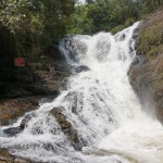 Zwei Wasserfälle standen an diesem Tag in Mittelpunkt. Zunächst ging es zu dem 5km entfernten Datanla Wasserfall. Das Besondere daran, man kann mit einer Art Achterbahn ( https://youtu.be/UX-DWyCfiR4 ) hinunter zum Wasserfall fahren. Warum also immer laufen… Diesmal also per Bob zum Wasserfall. Insgesamt sehr nett die Anlage aber touristisch bis zum äußersten ausgereizt ( kleine Seilbahn, Achterbahn, Fahrstuhl, Restaurants, auf einem Pferd sitzen und sonstige unnützen Dinge ). Der Vietnamese scheint es schön zu finden. Danach auf zum ca. 45km entfernten “ Pongour “ Wasserfall. Nach ca. 30km haben wir aufgegeben, denn die Straße war dermaßen schlecht, da wollten wir kein Risiko eingehen. Die Fahrweise der Vietnamesen – Bus und LKW Fahrer – war ein weiterer Grund. Es besteht kein Grund überhaupt irgendein Risiko einzugehen. Also 180° Grad Wende und wieder zurück nach Dalat. Nach ca. 20 Minuten kam es ganz digge von oben. Klatsch nass sind wir am späten Nachmittag in Dalat angekommen. Vorher haben wir noch schick im BIG „C “ eingekauft um Abends zu kochen. Endlich hatten wir die Möglichkeit Bratkartoffeln mit Spiegelei zu brutzeln. Dazu gab es dann noch ein paar Garnelen. Die fremden Gerüche lockten Sunny sowie ein Pärchen aus Kambodscha magisch an, so dass wir uns das Essen haben gemeinsam schmecken lassen. Ich sag nur German Bratkartoffeln mit “ mirroreggs “ bei Sunny-Dalat. Das war ein Gaumenschmaus für alle. Mit fetter Plautze dann direkt ins Bett. Man war das lecker. Wir haben schon wieder Hunger….