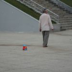 Omis im Seidenschlafanzug beim Nachmittagsspaziergang