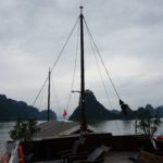 Für die Weiterreise nach Hanoi haben wir uns wohl den schönsten Weg überhaupt ausgesucht. Nämlich via Lan Ha Bucht sowie die Ha Long Bucht. Eine fast 4 stündige Seereise durch Inseln und Karstberge im Golf von Tonkin. Das war ja auch Sinn der ganzen Aktion. Kurz ein paar Geschichten / Informationen zur weitaus größeren Ha Long Bay ( Bucht der untertauchenden Drachen ). Die Ha Long Bay umfasst ca. 1969 meist unbewohnte Inseln und Felsen, die teilweise hunderte von Metern in die Höhe ragen. Weltnaturerbe der UNESCO seit 1994. Es gibt viele Legenden zur Ha Long Bay, eine davon…. Ein Drachenmädel ( vielleicht ja Godzilla ) mit Kindern lebte an der Küste. Das Land wurde seeseitig von Schiffen angegriffen . Daraufhin spuckten die Drachen Jadeperlen in das Wasser welche sich sofort in Stein verwandelten. Daran zerschellten die Schiffe und der Angriff wurde abgewehrt. Jährlich ca. 2,5 Millionen Besucher. Ist mega Touri mässig, aber trotzdem sehr geil und uns muss für jeden Vietnam Besucher. Nach der Ankunft in Ha Long City dann ganz spröde mit dem Bus nach Hanoi .