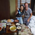 Diesmal mussten wir „ erst „ um 11:00 Uhr raus aus dem Apartment.  Aufstehen, packen, etwas sauber machen und frühstücken. Danach auf zur Kyoto Station um das Gepäck zu verschliessen und Busfahrkarten zu kaufen ( Tomoko wir kommen !!! —> Kyoto / Tatsuno ).  Nachdem wir dies erledigt hatten ging es auf zum Eisenbahn Museum. Ihr werdet jetzt lachen, aber endlich mal was anderes als Tempel, Landschaften, Strände 😉 Der stolze Preis von 12 EURO Pro Person war gut investiert, denn hier kann Man(n) sich gern mal den ganzen Tag aufhalten. Leider hatten wir nur 2 Stunden Zeit, denn um 17:17 Uhr ging es schon weiter mit dem Highway Express Bus nach Tatsuno. Wieder mal etwas Neues für uns, denn die Bushaltestelle befindet sich direkt auf der Autobahn. Zu erreichen über eine Treppe hinauf an einer dort eigens eingerichteten Haltebucht. ETA Tatsuno um 21:26 Uhr. Pünktlich in Tatsuno angekommen, aber wo ist Tomoko ? Wir dachten schon, dass wir falsch sind aber auf einmal stand Sie da in voller Lebensgröße unsere Tomoko. Die Begrüßung natürlich sehr sehr herzlich und so ging es mit dem Auto von Tomoko in die Sakai Residenz. Zu hause angekommen wurden wir von Mutti und Papa Sakai ebenfalls super herzlich empfangen ( nicht zu vergessen die 45° Grad Verbeugung sowie wie ein „ Kon’nichiwa „ ). Der Abend endete spät bei Snacks –  bestehend aus Mini Salamis, Tintenfisch Kräckern, Tintenfisch-Faser-Dingern und Baby Bambus ( aus dem eigenen Garten )  – sowie viel Bier und natürlich Sake. Gute Nacht Sakai Castle.