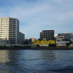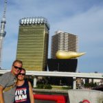 - Wir beiden vor dem Asahi Gebäude. Sieht aus wie ein Gorilla Furz.
