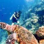 Am ersten kompletten Tag nur Dauerregen. Das macht nichts, da entspannen wir uns mal. Für den heutigen Tag haben wir uns für zwei Tauchgänge angemeldet. Die Christl wird das angebliche Paradies – alle Reisenden, die wir bisher getroffen haben schwärmten nur so von den Bunaken ( das kann ja nur in die Hose gehen 😉 – beschnorcheln und ich habe mich für einen DoppelMutziTauchgang angemeldet. Auf zum Frühstück ( Pancake in Rohform, dazu Papaya, Bananen und eine Schokocreme ) um 07:30 Uhr. Anprobe des BCD’s sowie des Shorti’s direkt am Nebentisch. Anais und Quentin – die wohnen jetzt gegenüber – sind mit von der Partie. Bei schönem Wetter ging es um 08:30 Uhr los zum ersten Tauchspot ( Fukui ) Das fing schon mal gut an, denn ich konnte kaum abtauchen. Die Unterwasserkommunikation hat super funktioniert und schon hatte ich ein zusätzliches KG in der Tasche. Die schmale Kost der letzten Wochen ( Reis, Reis, Gemüse, Gemüse, Gemüse…. ) hat sich noch positiver auf meine ohnehin schon kernige Figur ausgewirkt. Immer noch etwas zu leicht, das wird dann beim nächsten Tauchgang korrigiert, ging es in die Tiefen der Bunaken. Anais und Quentin hatten einen eigenen Guide, ich hatte Anto für mich ganz allein ( oder er mich ). Die Reisenden sollten Recht behalten, schon die ersten Meter zeigten, das ist hier ein Paradies. Nach einer kurzen Pause – alle konnten kaum Luft bekommen vor Begeisterung – ging es dann auf zum zweiten ( Spot: Mika Kampung ) Einsatz im Wasser. An der Riffkante nur 200 Meter vom Strand entfernt ging es wieder in warme Nass. Könnt es noch besser werden als beim ersten Gang ins Wasser, ja ! Unmengen von Schildkröten, Tolle Korallen, mega viele Fische, ein paar Haie und noch mehr Schildkröten. Die Schnorchelfraktion sowie die Taucher waren begeistert. Nach einem tollen Mittagessen – das Essen ist hier mega geil – ging es dann nochmals auf Schnorchelexpedition. Uns begegneten wieder ein paar Schildkröten und einiges ein tollem Fischmaterial. An der Riffkante zu schnorcheln ist schon mega geil. Ich höre jetzt auf zu sülzen und empfehle sich die tollen Bilder anzuschauen.