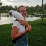 Die Tage verbrachten wir sehr entspannt in Ayutthaya. Den Roller hatten wir 2,5 Tage, sodass wir auch die kleinsten Entfernungen – hätten wir wohl sonst alles zu Fuß gemacht – mit dem Scooter erledigen konnten. Mal eben zum 7Eleven oder zur Wäscherei. Wir haben unseren Aufenthalt auf 3 Übernachtungen verlängert. Uns gefällt es sehr gut hier und die Hitze macht es einem unmöglich sich schnell zu bewegen ( was wir ja eh nicht machen ). Am Vor und späten Nachmittag erkundeten wir die Gegend und um die Mittagszeit verzogen wir uns für ein paar Stunden auf unser klimatisiertes Zimmer oder auf unsere Terrasse. Das Leben ist toll ! Am letzten Abend erblickten wir an der Straße einen Burger Food Truck. Wir genossen unsere Burger mit Pommes an der Straße und sahen den Menschen beim Boccia zu. Auf der Rückfahrt zum Hostel kamen wir an einer großen Wiese vorbei auf der sich ein paar Menschen versammelt haben. Mal schauen was da los ist. So etwas haben wir auch noch nicht gesehen, die Leute treffen sich hier um Ihre – meist Papageien – fliegen zu lassen. Wir gesellten uns dazu und genossen den Abend. Das eine oder andere Mal bekamen wir Besuch vom Vogelvolk.