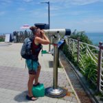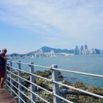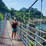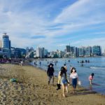 Weil’s so schön war wollten wir nochmal ans Wasser. Da kommt uns der Igidae Küstenweg doch sehr entgegen. Per Bahn und Bus ging es dann zum Ausgangsort des Küstenwegs. Zunächst ging es aber auf einen kleine Skywalk, in Korea sind die Dinger sehr beliebt. Kostet nix also rauf auf das Teil. Mit schicken Überziehern drehten wir eine Runde. Danach ging es dann auf den Küstenweg, mit Ziel der ca. 5 Kilometer entfernte Gwangalli Beach. Die knapp 5 Kilometer waren mal wieder sehr schweisstreibend aber auch sehr schön. Am Ende des Weges wollten wir dann den Rest per Taxi fahren. Gerade eingestiegen sagte uns der Taxifahrer, dass dieser gerade eine andere Tour reinbekommen hat. Auf eine Kurztour hatte der Kollege wohl keine Lust. Also gingen wir die letzten 1500 Meter dann auch noch…. Puh war das ein anstrengender Tag, den wir dann am Strand mit einigen Soju/Cider Dosen ausklingen lassen wollten. Uns hat es hier so gut gefallen, dass wir weiteres alkoholisches Material und ungesundes Essen ( Chips & Co ) in nicht näher zu beziffernden Mengen zu uns nahmen. Nur Strand, Getränke und gutes Essen, das ist dem Koreaner nicht genug und deshalb wurde neben Livemusik auch Drohnenshows ( mega geil im Nachthimmel ) und Straßenmalerei geboten. Wahrscheinlich ging hier sogar noch mehr, wir hatten aber so langsam den Überblick verloren. Mit den “ locals “ hatten wir natürlich auch mächtig Spaß. Der Koreaner trinkt und feiert ja gern mal und für heute ließ der Finanzminister einfach mal laufen. Gegen Mitternacht waren wir dann wieder im unserem Elysee. Das war mal wieder ein richtig geiler Tag. Danke an Christl und den Gwangalli Beach