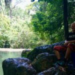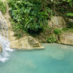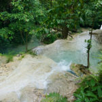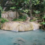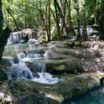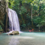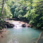 Dem vorherigen Beitrag sei noch hinzugefügt, dass es sich beim dem Leihscooter um ein 125er Hochleistungsgerät handelte. Bisher waren wir ja nur auf 50 Kubik unterwegs, aber da sich die Wasserfälle ca. 65 Kilometer von Kanchanaburi entfernt befinden, buchten wir diese Jungfernfahrtmaschine. Auf den Rennstrecken dieser Erde benötigen wir in diesem Fall mehr Pferdestärken. Da wir die Maschine bis 15:00 Uhr zurückgeben musste, ging’s früh hoch. Der Wettergott war uns gnädig, es war mega schön. Nach etwas Eingewöhnung erreichten wir unser Ziel um ca. 10:00 Uhr. Unterwegs ist mir dann noch eingefallen, dass ich meine Badehose vergessen habe…. In Asien kein Problem, denn die Händler haben sich auf sämtliche Situationen eingestellt. Eine neue Badehose ( THB 100,00 ) war schnell gefunden und gekauft. Tickets gelöst ( THB 300,00 pro Person ) uns los geht’s. Mal wieder nichts los hier, aber das passt uns ja ganz gut. Der Wasserfall besteht aus 7 Stufen, die wir im Nu erklommen haben. Bis zur 5 Stufe gut ausgebaute Wege, ab dann wird’s ein bisschen naturbelassener. Die meisten Besucher machen wegen der Kinder, aus Alters oder Konditionsgründen eh nur die ersten 1-3 Stufen. Somit hatten wir das Terrain fast für uns allein. An der letzten Stufe ging es dann ab ins Wasser. Was für eine tolle Erfrischung, aber……. die Fische kitzelten an unseren Füssen. Nein die Fische – ob klein oder groß – sahen uns als Beute und knabberten an uns rum. Ganz beliebt waren irgendwelche offenen Stellen an den Füssen oder Beinen. Auf einem Fischfreien Felsen fanden wir unsere Erfrischung und genossen die Natur. Pünktlich um 15:00 Uhr waren wir dann zurück bei Scooter Muddi. So 1-2 Stunden mehr wären auch ganz geil gewesen. Ein super Tag bei bestem Wetter. Schaut Euch die Bilder an.
