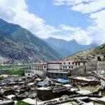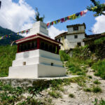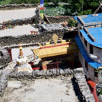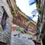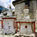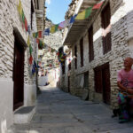Nach der wunderschönen Tour vom Vortag haben wir uns für heute nur Marpha und ein wenig Umgebung vorgenommen. Nach einem späten Frühstück ging es erstmal in die Bergwelt hinter Marpha. Von dort aus haben wir einen tollen Blick über das Dorf. Es ist ganz schön windig hier – der Flugbetrieb von und nach Jomsom wurde bereits eingestellt – und deshalb wechseln wir von den schmalen Pfaden lieber auf die Straße. Nicht so schön aber dafür sicherer. Man hat hier einen grandiosen Ausblick auf Marpha. Weiter geht es von Ecke zu Ecke, Kurve um Kurve bis wir eine große Apfelplantage erreichen. Mega schön hier und wir erhaschen dann doch noch einen Blick auf die schneebedeckten Berge. Es wird wolkiger in Marpha + Umgebung und wir gehen mal davon aus, dass die Regenzeit naht. Die Aussichten auf die Kracherberge werden weniger, aber direkt über uns strahlt die Sonne aus dem schönsten Blau. Wir machen uns auf den Rückweg nach Marpha, denn wir möchten noch ein wenig durch die Gassen schlendern und uns das Kloster anschauen. Die Saison ist zu Ende, wir genießen die Dorfruhe. Nur ein paar wenige Tages – und noch weniger Übernachtungsgäste – verlieren sich in Marpha. Viele Läden, Unterkünfte und Restaurants sind bereits geschlossen. Wir saugen die Ruhe und die tolle Atmosphäre von Marpha auf. Eine kleine Besonderheit zu der Region um Marpha, es gibt einige Apfel und Aprikosen Anbaugebiete. Die Produkte, Apfelchips, diverse Schnäpse – lecker – Obstkuchen etc… kann man frisch kosten oder auch gern als Mitbringsel erwerben. Den Tag lassen wir im voll verglasten Restaurant mit Blick – wenn es dann will – auf das Nilgiri Massiv ausklingen ( Ein Schnaps oder Wein darf gern dabei sein ). Wir sind begeistert von Marpha !