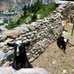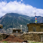 Heute brechen wir zu unserer letzten Wanderung auf. Es bleibt bei sehr angenehmen 25° ( tagsüber ) und über uns scheint noch immer die Sonne. Nur in den höheren Regionen – ich schätze mal ab 4500 Metern – sind die Berge oftmals in Wolken verhüllt. Unser Herbergsvater hat uns die Kurztour nach Chimang ans Herz gelegt. Ein super Tipp den wir sofort in die Tat umsetzen. Chimang ist ein noch kleineres Dorf als Marpha und nur 1,5 Fussweg von Marpha entfernt ( also für uns dann eher 2,5 Stunden pro Tour, da wir ja immer so rumtrödeln ). Ja das rumtrödeln, sich mal hinsetzen, einen Tee trinken, ein bißchen schnacken, Fotos schießen und einfach die tolle Landschaft + Bergwelt genießen, dass ist genau unser Ding. Das mag auch ein Grund dafür sein, dass wir uns keiner Wandergruppe anschließen, die ja ein gewisses Tagespensum zu absolvieren hat. Außerdem kann man hier bequem und ohne “ guide “ die Landschaft unsicher machen. So gegen 09:30 Uhr haben wir uns auf den Weg gemacht. Bis zur ersten Hängebrücke ging es an der staubigen Hauptstraße entlang. Apropos, ich muß Christina mal ein großes Lob aussprechen, denn Hängebrücken sind nicht so Ihr’s. Nichtsdestotrotz hat Christina alle Herausforderungen angenommen und mit Bravour gemeistert. Viele viele Umwegkilometer mehr hätten wir abreißen müssen. Das letzte Stück nach Chimang geht es steil hinauf, denn das Dorf liegt auf einem kleinen Plateau. Hier ist es noch gemütlicher als in Marpha, eine Unterkunft, ein paar kleine Läden und Restaurants. Touristisch ist hier gerade nichts los, die Einwohner beschäftigen sich mit der Ernte oder anderen landwirtschaftlichen Aktivitäten. Kurz vor Marpha genehmigen wir uns bei ner Muddi – inkl. Klönschnack – noch einen Tee. In Marpha gibt es noch frisch gebackene Köstlichkeiten ( Croissant und Muffins ) + Tee und Kaffee. Den Abend lassen wir dann wieder in unserem Restaurant Glaspalast ausklingen. Das war mal wieder ein toller Ausflug in die Natur. Mega schön !!!
