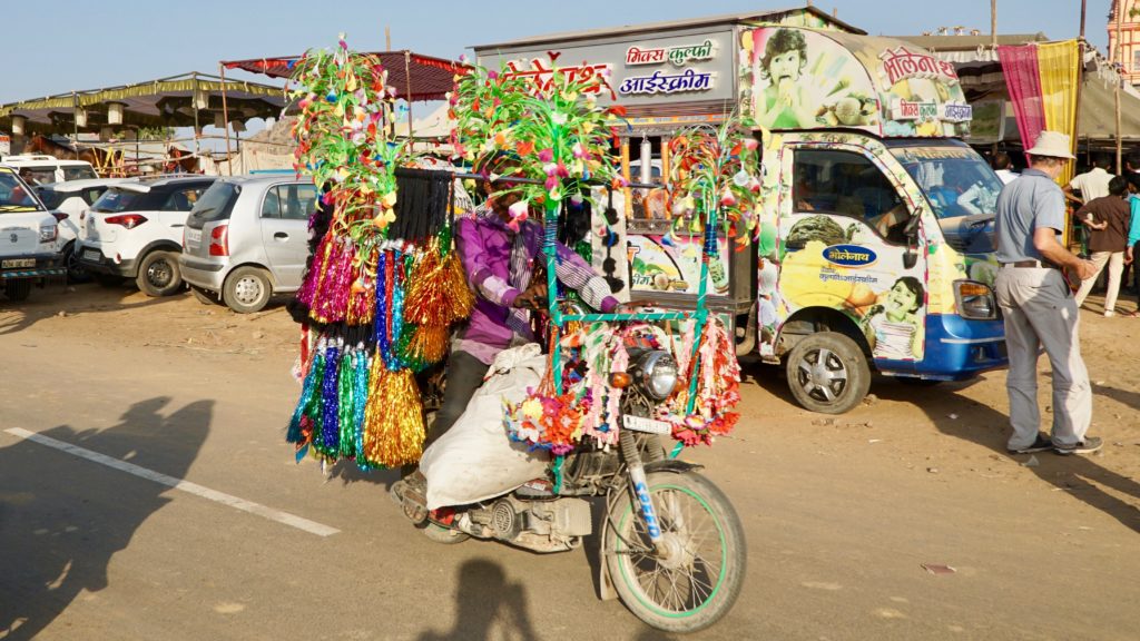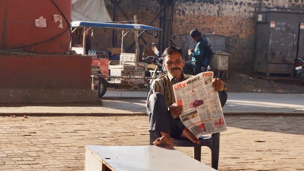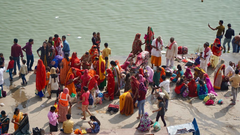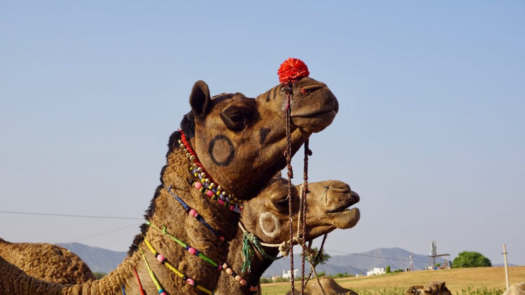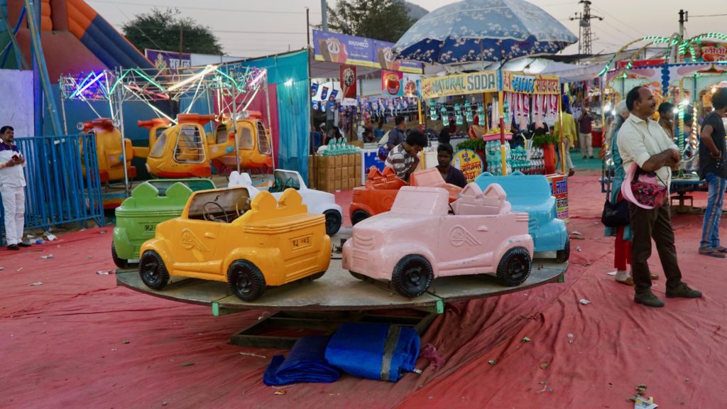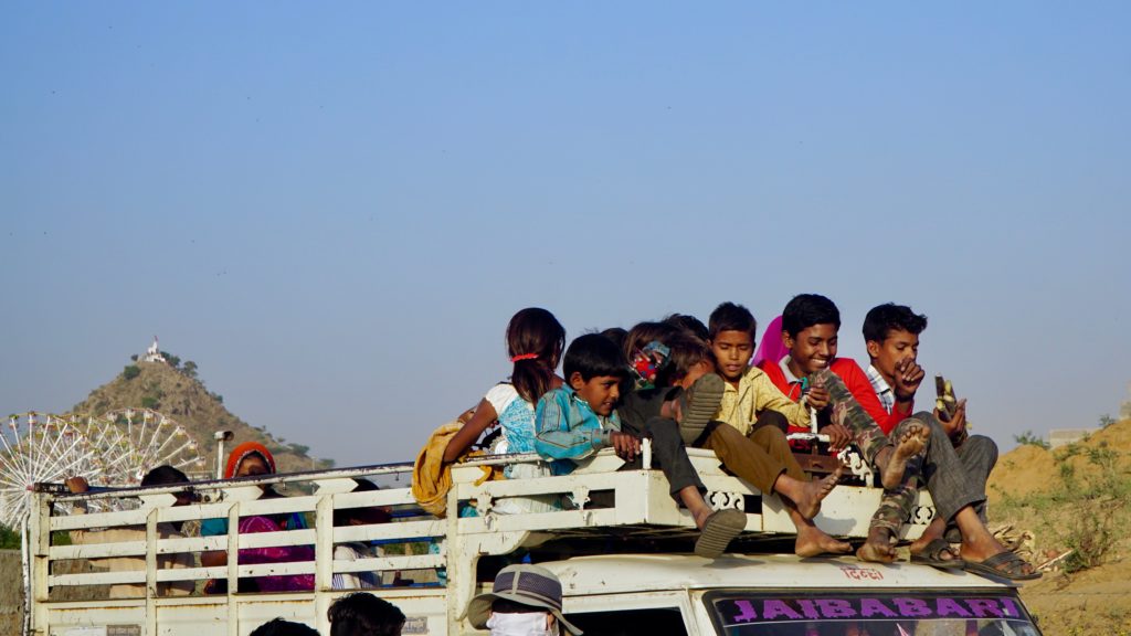 Die Nacht war….. was sollen wir sagen…. quasi nicht vorhanden. Dass es in Indien laut ist, wissen wir, dass es keine Isolation an den Häusern gibt auch, aber das war wirklich hart. An Einschlafen war nicht zu denken, da überall geredet, gesungen, telefoniert und über uns Möbelrücken gespielt wurde. Irgendwann kehrte dann Ruhe ein, aber um 04:00 Uhr war vorbei! Irgendeine Maschine mit Motor und Gepolter ging los. Wie uns später der Hotelbesitzer erklärte stellt der Nachbar morgens Essen her, das er dann tagsüber verkauft. Was das sein soll wissen wir nicht, aber da war uns klar, dass das keine Ausnahme war sondern uns auch in der nächsten Nacht den Schlaf rauben wird. Aber nein, das ist noch nicht alles. Die Maschine polterte bis um 06:00 Uhr und um 05:30 Uhr ging dazu noch Musik los. Na ja, Musik ist übertrieben, ein gebetsähnlicher Gesang bestehend aus einer einzigen Strophe, die in Endlosschleife bis ca. 07:30 Uhr dröhnte. Und dann natürlich wieder der ganz normale Alltagslärm des indischen Lebens…. Welcome to India! Aber so lieben wir es schließlich auch. Also, raus aus den Federn und mitmischen! Zuerst gab es wieder einen Tee, dieses Mal Ingwer-Limette mit Honig, der hatte es in sich und wir waren wach! Satt waren wir übrigens immer noch von der Paprika am Vortag. Wir schauten nochmals beim Kamelmarkt vorbei, aber heute waren noch weniger Kamele da, also ab zum See. Und da bot sich so einiges für unsere Augen und Ohren. Es macht so ein Spaß sich unter’s Volk zu mischen, aber wir mussten natürlich auch wieder für einige Selfies herhalten. Da kennen die Jungs und Mädels auch nix, es wird an dir gezerrt und gezogen bis du die richtige Position hast und wenn du mal nicht richtig in die Kamera schaust, dann bitte nochmal. Einer Schulklasse hatten wir es angetan, sie wollten wissen wo wir her kommen etc. Die üblichen Fragen eben, und als Winnie eines der Mädchen fragte ob sie einen Freund hat, waren alle peinlich berührt, es wurde gekichert und gegackert, total niedlich. Wir beobachteten das Treiben noch ein wenig von einer Dachterrasse bei einem Tee und deckten uns mit nützlichen und umnützlichen Souvenirs ein. Der Teemann unseres Vertrauens, gleich gegenüber von unserem Hotel, bot uns an, dass wir auch zum Essen zu ihm kommen können, das wollten wir auch machen. Wir schauten uns den Sonnenuntergang auf der Terrasse unseres Hotel an, entspannten uns ein wenig und gingen dann runter zum Abendessen. Wir dachten, wir sitzen draußen vor seinem Kiosk wo er auch den Tee ausschenkt, aber er lud uns in sein Haus ein. Zuerst schickte er aber alle seine Kinder raus. Wir sagten, dass sie wegen uns nicht gehen müssen, aber nein, wir seien seine Gäste und das ist okay so. Wir sollten uns auf den Boden setzen und dann kochte Muddie für uns! Grandios! Es gab Gemüse, weißen Reis, ein Curry in Form einer Kartoffel-Blumenkohl-Suppe, Chapati, Dal ( Linsen ), Aloe Vera Chutney, Bratreis mit Gemüse und zwischendurch reichte uns die Hausdame immer Mal eine kleine Leckerei, irgend so eine Zuckermasse, die wir zum Chapati essen sollten, eine Dattel und am Ende eine Art bröseliger Keks aus ganz viel Zucker und Zimt. Herrlich. Vaddi schaute immer mal nach dem Rechten, aber er musste ja draußen seine Kundschaft bedienen. Muddi konnte kein Englisch, saß aber trotzdem bei uns wir wir unterhielten uns mit Händen und Füßen. Es war einfach nur schön! Das sind so Momente, in denen wir unendlich dankbar sind, so etwas erleben zu dürfen.