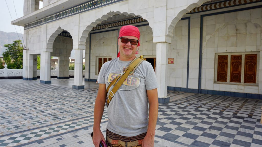 - Am Tempel. Meine Mütze musste ich gegen ein Kopftuch tauschen