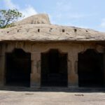 Felsentempel / Mandapa – Ist in der indischen Architektur die Bezeichnung für eine seitlich offene Säulenhalle. Die Wände sind mit Reliefs verziert.