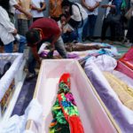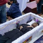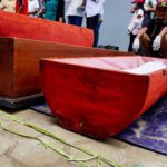 Der Sarg kommt in die Sänfte für den Gang durchs Dorf