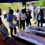 Die Toten Rituale in der Region Toraja sind legendär – und deshalb ein Muß für jeden Sulawesi Besucher – auch wenn es sich makaber anhört. Diese Tradition wird bereits seit Jahrhunderten gepflegt und ist nichts für empfindliche Nasen bzw. Gemüter. Je nach Region / Ort / Dorf werden die Toten ( Skelette, Mumien ) jährlich – wohl immer im August – aus den Särgen geholt um die Toten zu reinigen, mit neuer Kleider auszustatten, einen kleinen Klönschnack zu halten oder eben auch ein “ aktuelles “ Photo mit dem geliebten Menschen zu schießen. Natürlich wird auch getrauert. Im Mittelpunkt steht aber ein wenig Zeit mit der “ Familie “ zu verbringen und vor allem den Kontakt zu den Toten nicht zu verlieren. Für unsere Ohren hört es sich schräg an und sieht auch vielfach gruselig aus, aber so ist nun mal mit fremden Kulturen. Touristen sind bei der Zeremonie herzlich willkommen. Wir wurden sogar gefragt ob wir ein Photo zusammen mit der Familie und den Toten machen wollen. Wir lehnten dankbar ab, die Familie hatte Verständnis, hätte sich aber auch gefreut. Die ewige Präsenz des Todes im Leben, bei den Toraja gehört es dazu. Das Ganze hat so einen halben Tag gedauert. Am Ende wurden die Toten dann wieder in Tücher gewickelt und in die Särge gepackt. Danach ging es wieder in die Familiengruft. Im Gegensatz zu vielen anderen Regionen sind die meisten Toraja Christen ( missioniert von unseren Nachbar aus Holland ). Die christliche Totenruhe wird – aufgrund der Tradition – flexibel ausgelegt. Die Toten zu ehren, schützt die Lebenden vor bösen Geistern, so heisst es. Wir müssen unsere Gedanken erstmal ordnen, denn das war schon echt krass, aufregend, spannend, interessant in einem.