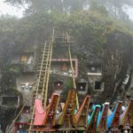 Zunächst ging es per Scooter zu dem Haus der Familie des Verstorbenen. Dort angekommen stellte unser Gude fest, dass der Sohn Eintritt für die “ Besichtigung “ seines Vaters verlangt ( Was für eine Überraschung… ). Immerhin IDR 200.000…. Wir wollen das natürlich mal “ live “ sehen, also teilten wir uns den Spaß, wobei unser Guide “ Erwin “ IDR 100.000 ( von unserem Geld ) dazu beisteuerte. Es hieß Schuhe ausziehen und wir betraten das Wohnhaus. Da stand er nun der Sarg. Mit etwas Mühe wurde der Sargdeckel entfernt und wir hatten freie Sicht auf den Toten Menschen. Ist schon seltsam, hier aber ganz normal. Der Tote bleibt bis zur Beerdigungszeremonie ein Familienmitglied und gilt als maximal Krank aber nicht Tot. Der “ kranke “ Mensch wird mit Geld, Essen und Trinken regelmäßig versorgt. Der “ kranke / Tote “ kann erst dann den Schritt ins Paradies machen wenn eine gewisse Anzahl von Büffeln – je nach Kaste / Stand der Familie – zur Verfügung steht. Hier streiten sich die Gelehrten, denn wir haben unterschiedliche Versionen gehört. Es geht von Minimum einem Büffel bis zu max. 25 Büffeln aufwärts, die bei der Beerdigungszeremonie geopfert werden. Wir trafen einen “ local “ am Vortag dessen Vater vor 5 Monaten gestorben ist und dieser will sage und schreibe 100 !! Büffel opfern. Es gilt als ganz besonders, wenn so viel wie möglich Albinobüffel geopfert werden. Genauso wie bei uns mit Autos wird hier mit Büffeln geprotzt…. Wir haben einen Albinobüffel im Wert von IDR 500.000.000 ( ca. EUR 35.000,00 ) bei dem Kollegen an der Garage gesehen. Eine Zeremonie kann auch gern mal EUR 500.000 verschlingen. Wir unterhielten uns noch ein wenig mit dem Sohn, der uns dann auch noch anbot in seinem Haus zu übernachten. Es waren wohl auch gerade ein paar Deutsche dort. Mal abgesehen von dem Toten im Haus, war uns die Unterkunft aber zu teuer. Der Kollege wollte IDR 300.000 pro Person haben.