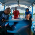 Mit Spannung erwartet, unsere ersten Tauchgänge nach Raja Ampat bzw. Hemmoor in 2020. Wir waren natürlich etwas nervös, denn wir haben vorm Tauchen den allerhöchsten Respekt und etwas aufgeregt sein gehört dazu. Treffpunkt 09:00 Uhr am Warung Bamboo, wir wurden sofort zum Strand weitergeleitet. Dort angekommen kam Rahman mit seinem Kleinster-LKW um die Ecke. Rauf auf die Ladefläche und ab zum anderen Strandabschnitt. Wir sahen bereits unser Tauchboot inkl. Deni, unseren Tauchguide und der zweiköpfigen Boots-Crew. Ab auf’s Boot und kurze Einführung. Neopren anziehen, Gürtel mit Gewichten angelegt, Tarierjacket angelegt, Maske aufsetzen und Flossen anziehen.