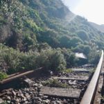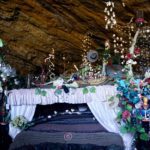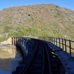 Noch eine weitere Nacht wollten wir hier nicht bleiben, es ist nett hier, aber es hält uns auch nichts. Es gibt aber einige schöne Wanderungen und eine kurze an alten Bahnschienen entlang zu einer Höhle und dann weiter zur Victoria Bay wollten wir noch machen, bevor es weiter geht. Wir haben uns den Ort Plettenberg Bay ausgesucht nur ca. 80 km entfernt, somit können wir es entspannt angehen lassen. Die Wanderung begann super schön an den Felsen entlang, mit Blick auf den langen Strand, bei strahlendem Sonnenschein. Hinter einem kurzen Tunnel erreichten wir die Höhle. Früher, als die Bahn noch in Betrieb war, mal ein Restaurant, aber dann stürzte der Berg ein und begrub die Schienen, somit wurde alles stillgelegt. Die Höhle ist jetzt ein Ort für Heimatlose, die gegen eine kleine Spende besichtigt werden kann. In der Höhle gibt es viele kleine Nischen zum Schlafen, Essen, Ausruhen und die Bewohner haben alles mit vielen Muscheln etc. dekoriert. Wirklich eine schöne Idee. Ein Stück weiter mussten wir dann eine alte Eisenbahnbrücke überqueren….. Und hier endete unsere Wanderung! Meine (Christina) Höhenangst ist ja nicht wirklich extrem ausgeprägt, aber hier siegte sie! Die Brücke war ca. 100 Meter lang und 20 Meter hoch, zwischen den Querverstrebungen der Gleise waren Hohlräume, einige Holzbalken waren schon verfault und der Fussgängerweg an der Seite bestand aus rostigen Metallplatten, die leider nicht mehr vollständig waren….. Ging gar nicht, keine Chance. Ich kapitulierte! Dann kommen wir eben früh in Plettenberg an, auch nicht so schlimm, denn auf den ersten Blick ein schöner Ort und Wale gibt es hier auch wieder. Das erste Hostel, das wir ansteuerten wurde auch gleich unsere Bleibe und wir machten uns auf den Weg ins Dorf um was zu Essen und….. Natürlich! Zum Wale gucken. Im Supermarkt gab es einen „Sundays Lunch“ für 29,99 Rand ( knapp 2 Euro ), da mussten wir zugreifen. Wir machten es uns am Ausguck bequem. Ein schöner Platz, oberhalb des Strandes gelegen mit Top Blick auf das Meer. Schon als wir ankamen war ein Wal ganz nah an der Küste zu sehen. Da war einiges los in der Bucht. Viele Sprünge konnten wir beobachten und eine Walkuh mit ihrem Kalb! Herrlich! Hier fühlen wir uns wohl! Abends im Hostel gab es ein typisches Gericht aus Südafrika, Bobotie, Minzhack in Käsesoße. Natürlich wieder mit Kamin. Bekannte Gesichter haben wir auch wieder getroffen, eine Französin und ein Engländer, die in Hermanus schon im gleichen Hostel waren. Wir nahmen noch ein paar Kaltgetränke am Kamin und plauderten ein wenig mit den anderen Reisenden.
