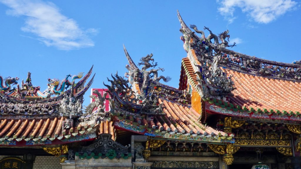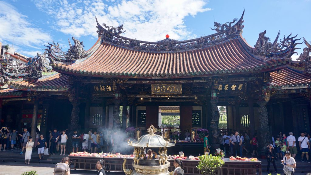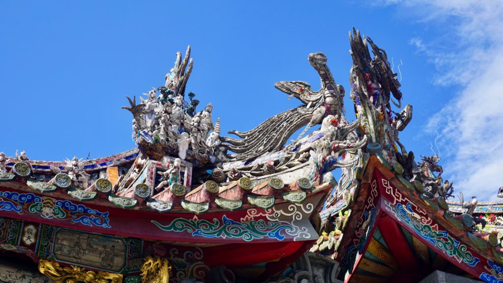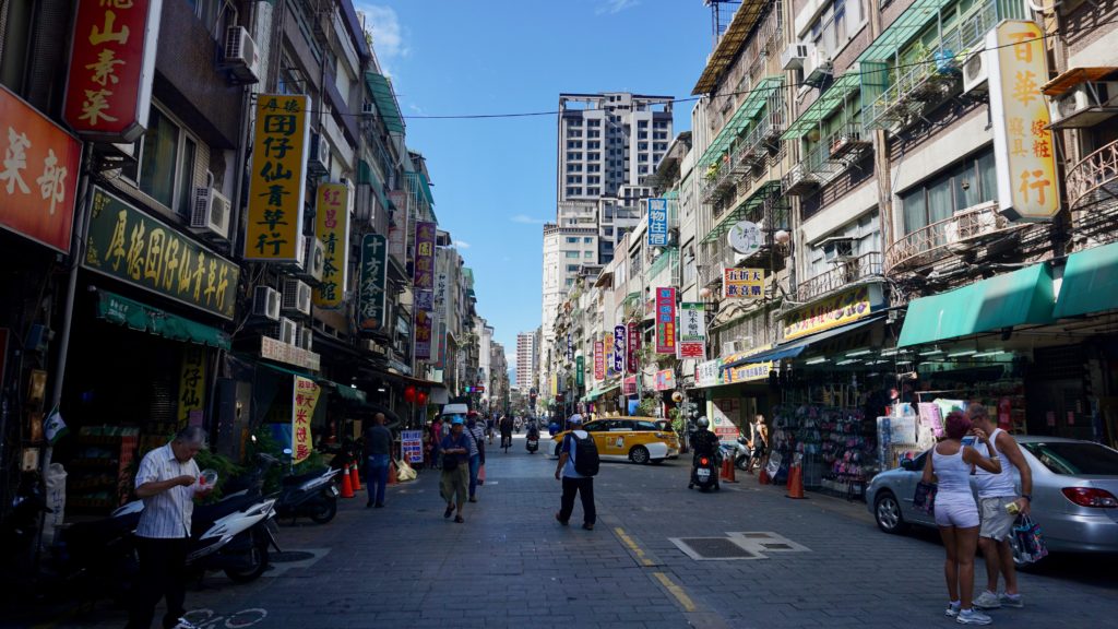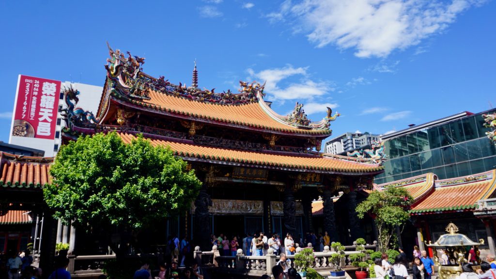 Unser erster Eindruck von Taipei war ja schon sehr positiv: viele kleine Gassen mit kleinen Shops und Restaurants, überall viel grün, sehr geordnet und sehr freundliche Menschen. Erinnert uns an Japan, und nicht nur wegen dem beheizten Toilettendeckel mit automatischer Sprühfunktion etc. 🙂 Wir wollten also mehr sehen. Unser Hotel lag im Bezirk Zhongshan, nach einem reichhaltigen Frühstücksbuffet mit allem was das asiatische ( und unser ) Herz begehrt, machten wir uns auf in Richtung Zhongzheng, Ximending und Wanhua um uns einige historische Gebäude und natürlich die beiden wichtigsten Tempel der Stadt anzuschauen. Den taoistischen Tempel Qinshan und den buddhistischen Longshan-Tempel. Beide wunderschön bunt, mit tollen Figuren. Bei Mitte 30 Grad, strahlendem Sonnenschein und einer 90%igen Luftfeuchtigkeit ist Sightseeing ganz schön anstrengend, vor allem wenn man wie wir alles zu Fuß abmarschiert. Also setzten wir uns in die MRT und fuhren nach Tamsui, eine historische Stadt an der Mündung des gleichnamigen Flusses. Wir dachten, wir können hier entspannt an der Promenade entlanglaufen und ein bisschen Natur genießen…. wirklich doof von uns, denn es ist Wochenende… Diese Idee hatten noch ein paar andere. Egal, ab unters Volk und den Wahnsinn auf sich wirken lassen. Eine Fressbude nach der anderen reihte sich entlang der Promenade und auf der anderen Seite des Flusses nochmal das Selbe. Wir gingen den Fluss entlang, bis zu einem alten Fischhafen, wo er in die Formosastraße mündet. Und hier wieder ein großes Spektakel, mit Karussell und Restaurants und natürlich die Lovers Bridge, auf der wieder die Hölle los war. Wir haben uns ein nettes Plätzchen gesucht und einfach ein wenig beobachtet, bevor wir dann den Bus zurück nach Tamsui nahmen, um nochmal an der Promenade zurück zur MRT zu gehen, wo jetzt noch mehr los war. Auf dem Weg zurück in die Stadt machten wir noch einen Zwischenstop auf dem Shilin-Nachtmarkt zur Nahrungsaufnahme. Ein riesiger Markt, der sich über mehrere Straßen erstreckt, mit leckerem Street-Food und viel Schnick-Schnack. Völlig erschöpft, aber sehr zufrieden fielen wir ins Bett.