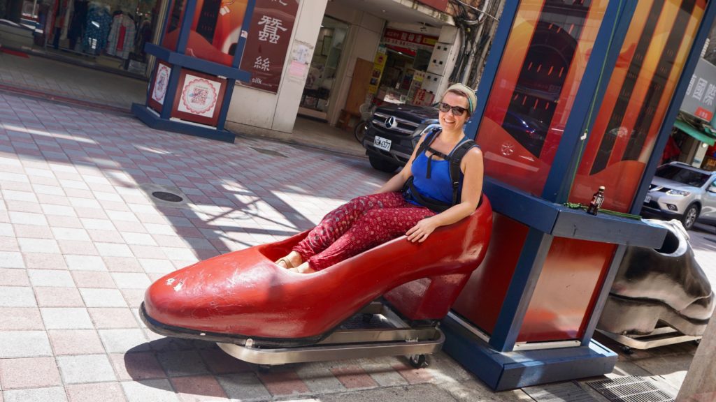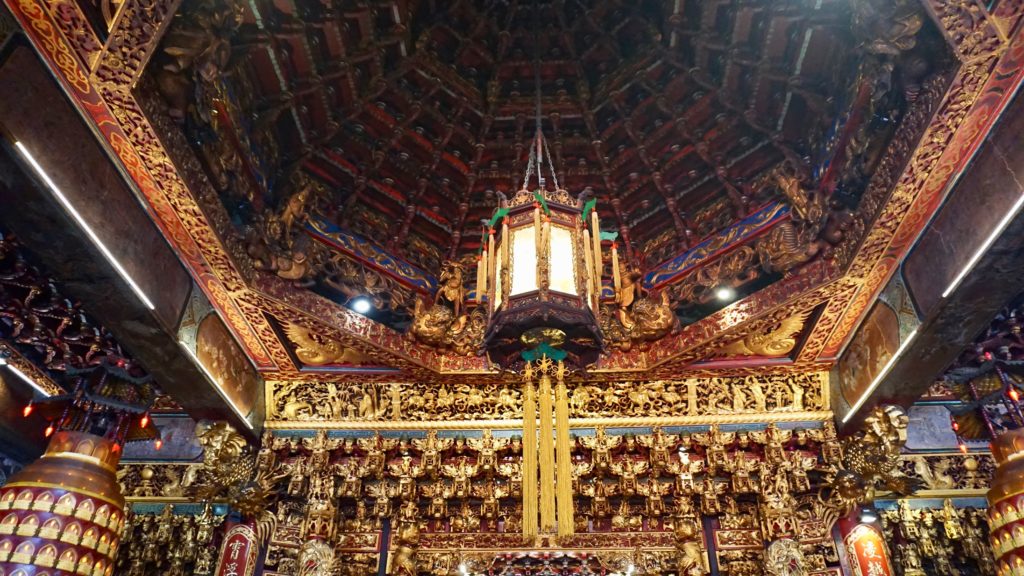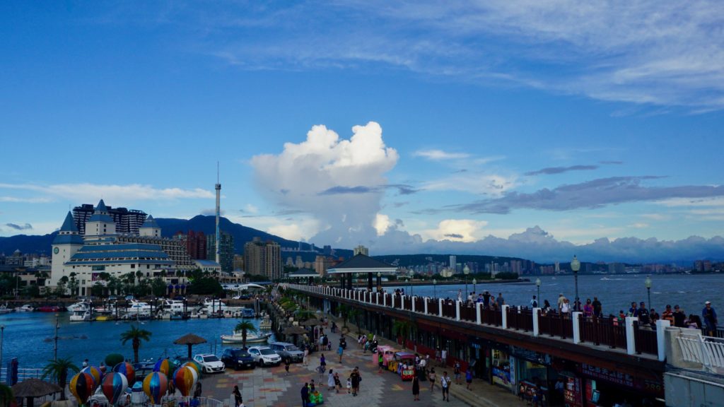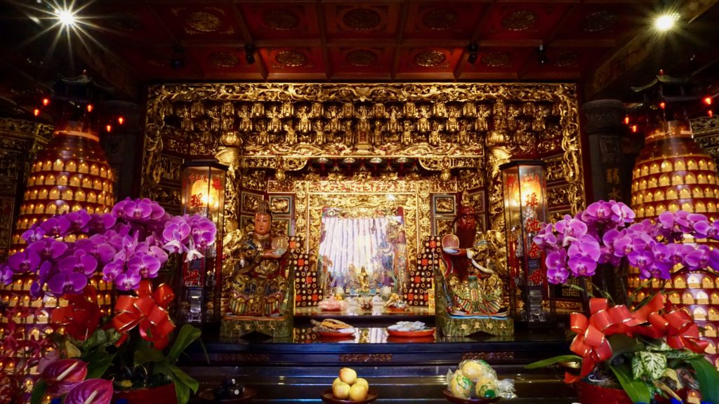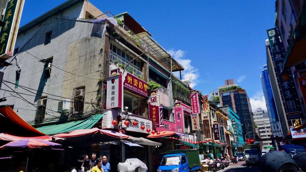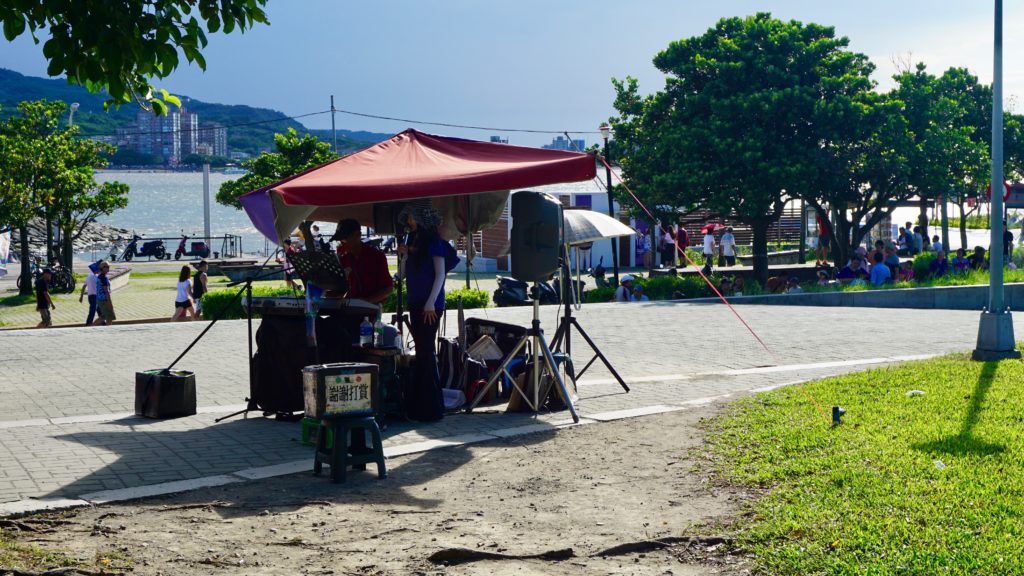 Unser erster Eindruck von Taipei war ja schon sehr positiv: viele kleine Gassen mit kleinen Shops und Restaurants, überall viel grün, sehr geordnet und sehr freundliche Menschen. Erinnert uns an Japan, und nicht nur wegen dem beheizten Toilettendeckel mit automatischer Sprühfunktion etc. 🙂 Wir wollten also mehr sehen. Unser Hotel lag im Bezirk Zhongshan, nach einem reichhaltigen Frühstücksbuffet mit allem was das asiatische ( und unser ) Herz begehrt, machten wir uns auf in Richtung Zhongzheng, Ximending und Wanhua um uns einige historische Gebäude und natürlich die beiden wichtigsten Tempel der Stadt anzuschauen. Den taoistischen Tempel Qinshan und den buddhistischen Longshan-Tempel. Beide wunderschön bunt, mit tollen Figuren. Bei Mitte 30 Grad, strahlendem Sonnenschein und einer 90%igen Luftfeuchtigkeit ist Sightseeing ganz schön anstrengend, vor allem wenn man wie wir alles zu Fuß abmarschiert. Also setzten wir uns in die MRT und fuhren nach Tamsui, eine historische Stadt an der Mündung des gleichnamigen Flusses. Wir dachten, wir können hier entspannt an der Promenade entlanglaufen und ein bisschen Natur genießen…. wirklich doof von uns, denn es ist Wochenende… Diese Idee hatten noch ein paar andere. Egal, ab unters Volk und den Wahnsinn auf sich wirken lassen. Eine Fressbude nach der anderen reihte sich entlang der Promenade und auf der anderen Seite des Flusses nochmal das Selbe. Wir gingen den Fluss entlang, bis zu einem alten Fischhafen, wo er in die Formosastraße mündet. Und hier wieder ein großes Spektakel, mit Karussell und Restaurants und natürlich die Lovers Bridge, auf der wieder die Hölle los war. Wir haben uns ein nettes Plätzchen gesucht und einfach ein wenig beobachtet, bevor wir dann den Bus zurück nach Tamsui nahmen, um nochmal an der Promenade zurück zur MRT zu gehen, wo jetzt noch mehr los war. Auf dem Weg zurück in die Stadt machten wir noch einen Zwischenstop auf dem Shilin-Nachtmarkt zur Nahrungsaufnahme. Ein riesiger Markt, der sich über mehrere Straßen erstreckt, mit leckerem Street-Food und viel Schnick-Schnack. Völlig erschöpft, aber sehr zufrieden fielen wir ins Bett.