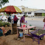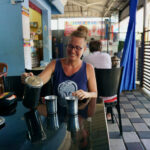 Wir warten bei Kokosnuss Kai auf den Bus nach Bangalore